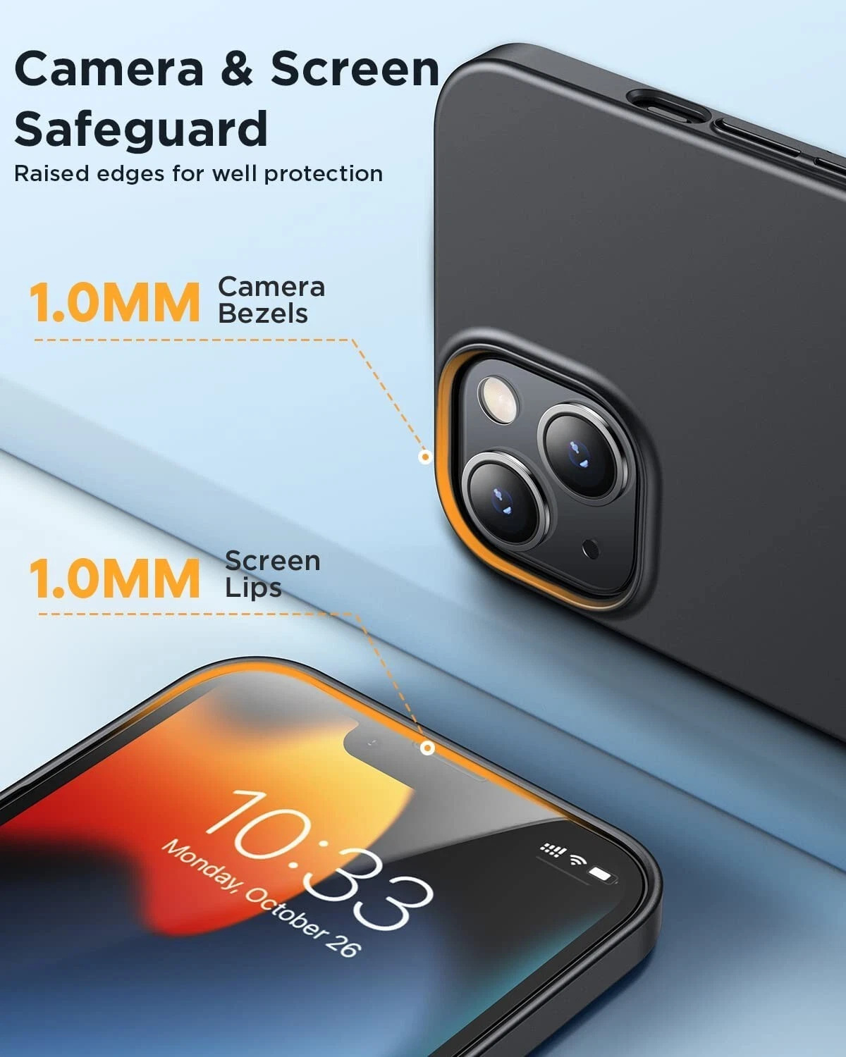 The screen bezel and camera have 1.0mm raised lips, ensuring that they are protected from scratches and accidental drops.